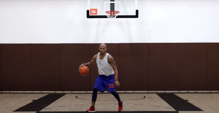 When practicing basketball drills, the low square stance allows for players to maximize their efficiency. Beginning in this position and dribbling the ball behind their backs helps basketball players understand how to handle the ball with increased finesse. Additionally, it helps players to gain better understanding of when to change pace and shift their hips in the most efficient manner. The combination of all three habits — low square stance, dribbling behind their back and changing pace — enable basketball players to become well-rounded athletes with a high level of basketball proficiency. These drills build essential basketball skills while helping basketball players learn control in a stationary behind the back dribbling situation.